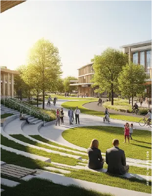 Forest-themed architecture, vertical greenery, expansive open landscapes, and wellness planning create cooler environments and distinctive luxury living experiences for residents.